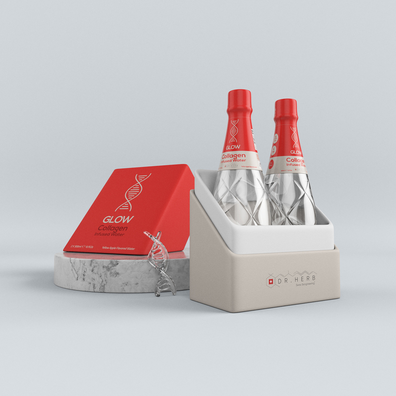 GLOW from within. The collagen infused water is where innovation meets beauty. GLOW was formulated by dermatologists and engineers to help stimulate collagen production, reduce wrinkles and cellulite, and help improve skin hydration and elasticity. With 2,500 mg of hydrolyzed collagen in each bottle, GLOW is clinically proven to help support hair, skin, nail and joint health.